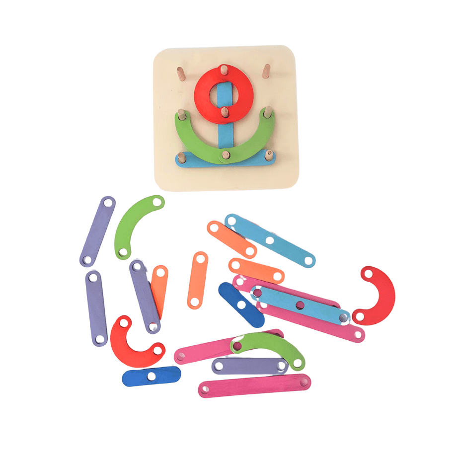 A refreshing way to build letters and numbers and various shapes, using pegs that fit onto the flat surface with pivots. Develops children’s skills: encourages learning letters and numbers, naming shapes, figures and colours, hand-eye coordination. Develops fine motor skills and children’s imagination.