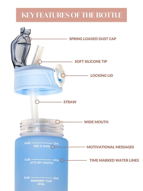 Each bottle usually features clear volume indicators in millilitres and ounces to help track daily water intake.
