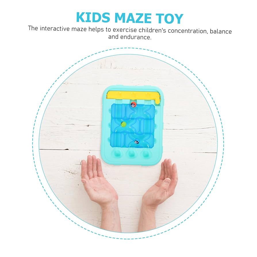 The objective is for the colored balls to successfully roll through the maze and land in the corresponding color-matched slots at the bottom of the board.
