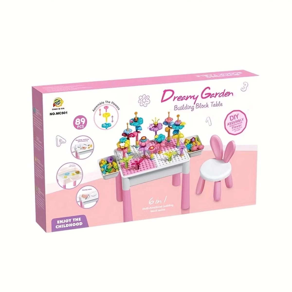 Set Components:Includes the activity table, abunny-eared chair, and building block pieces—often an 89-piece set.