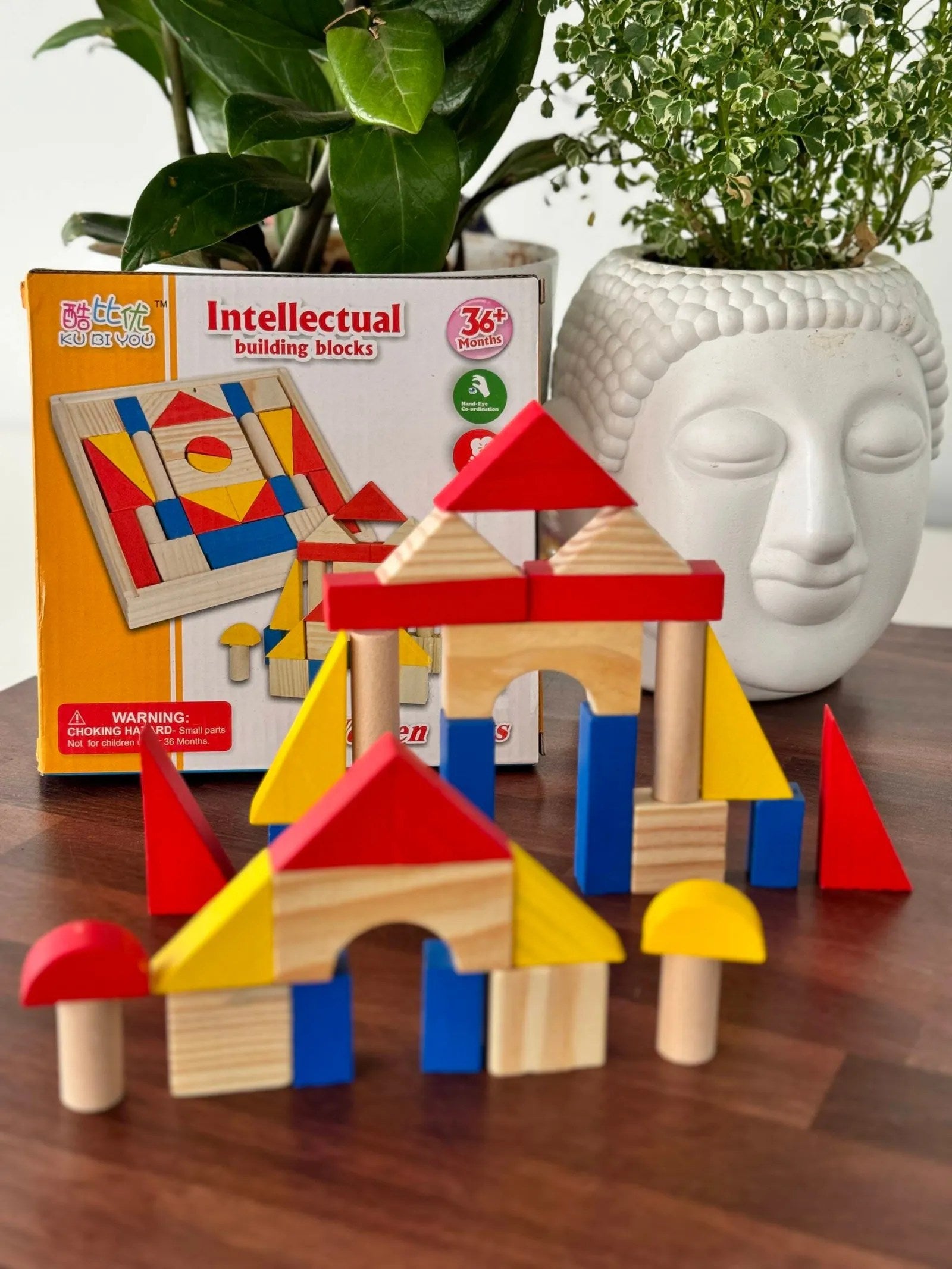 31 -Piece Set: Includes 31 wooden blocks in a variety of shapes and colors, perfect for creative building.