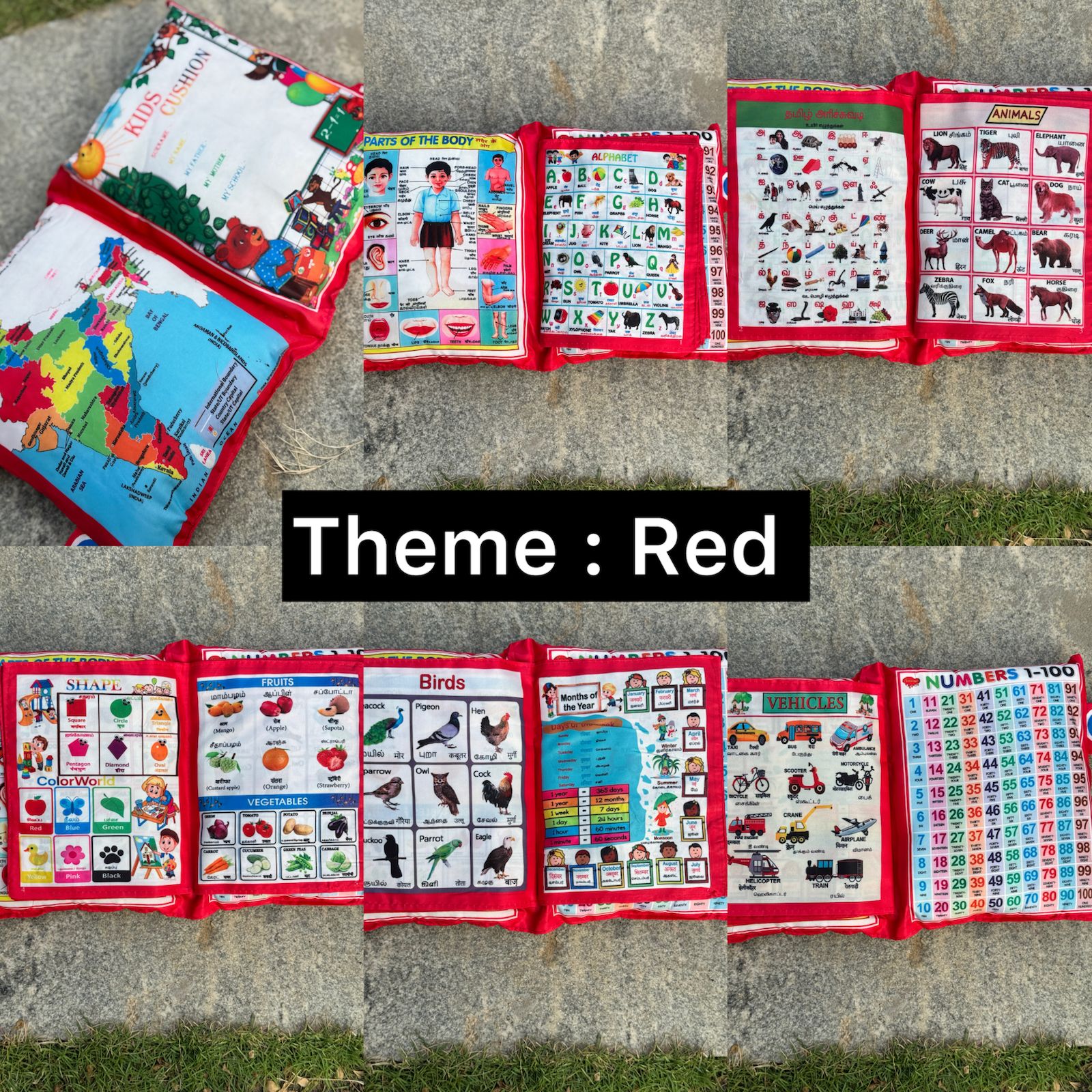 Many Page Is Inside .Learning Cloth books, It’s Include Alphabets, Numbers, National Map,Tamil letters,Parts of the body , Vehicles, Various Shape, Colors, All Day, All Month, Fruit, Vegetable, Animal Name, Birds And Children Learning, Best Trending Product In Learning Activity Center