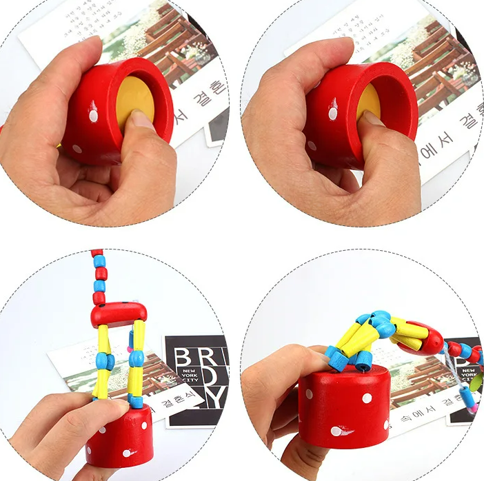 Finger Puppet Toys- Easily collapses when you put up the bottom. Release the button to make it jump back up.The set is painted in hues and sized right for small hands.