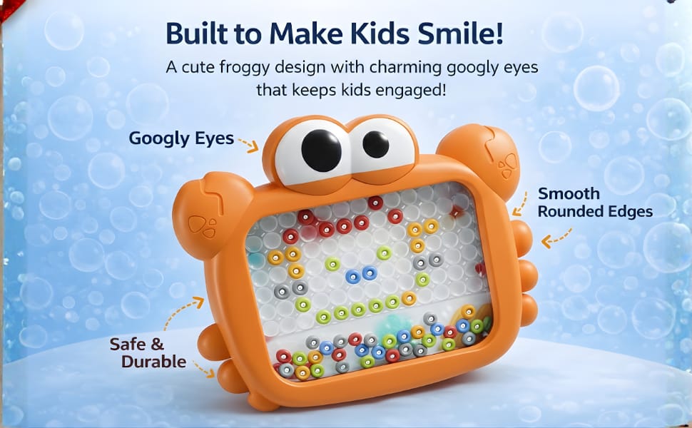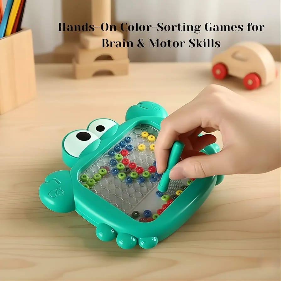 MESS-FREE AND PORTABLE: Compact frog-shaped design with enclosed magnetic beads ensures dust-free, mess-free creative play that's perfect for home, travel, car journeys, and quiet time activities
