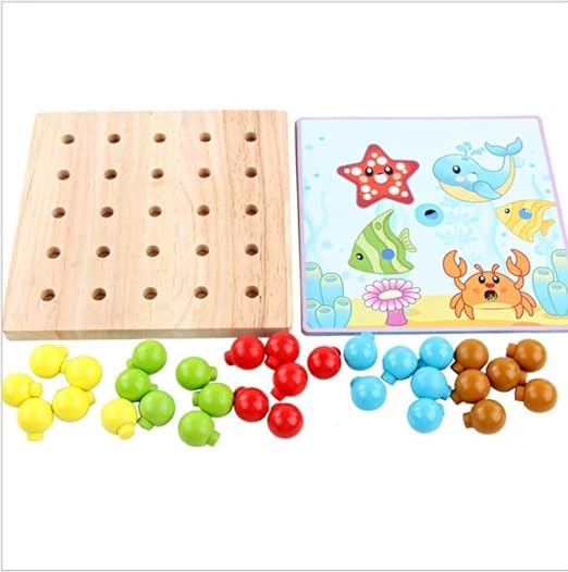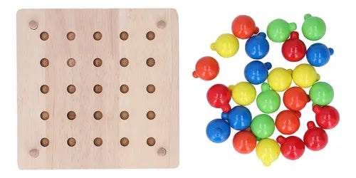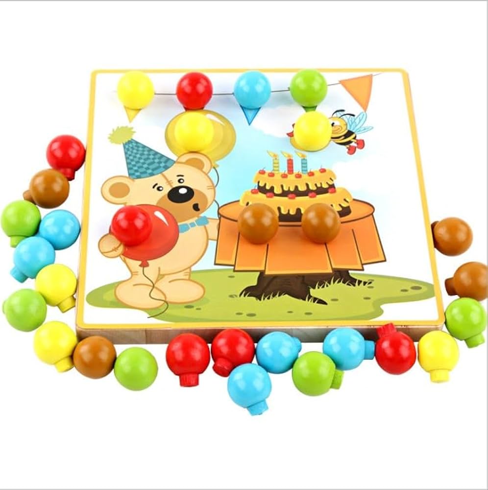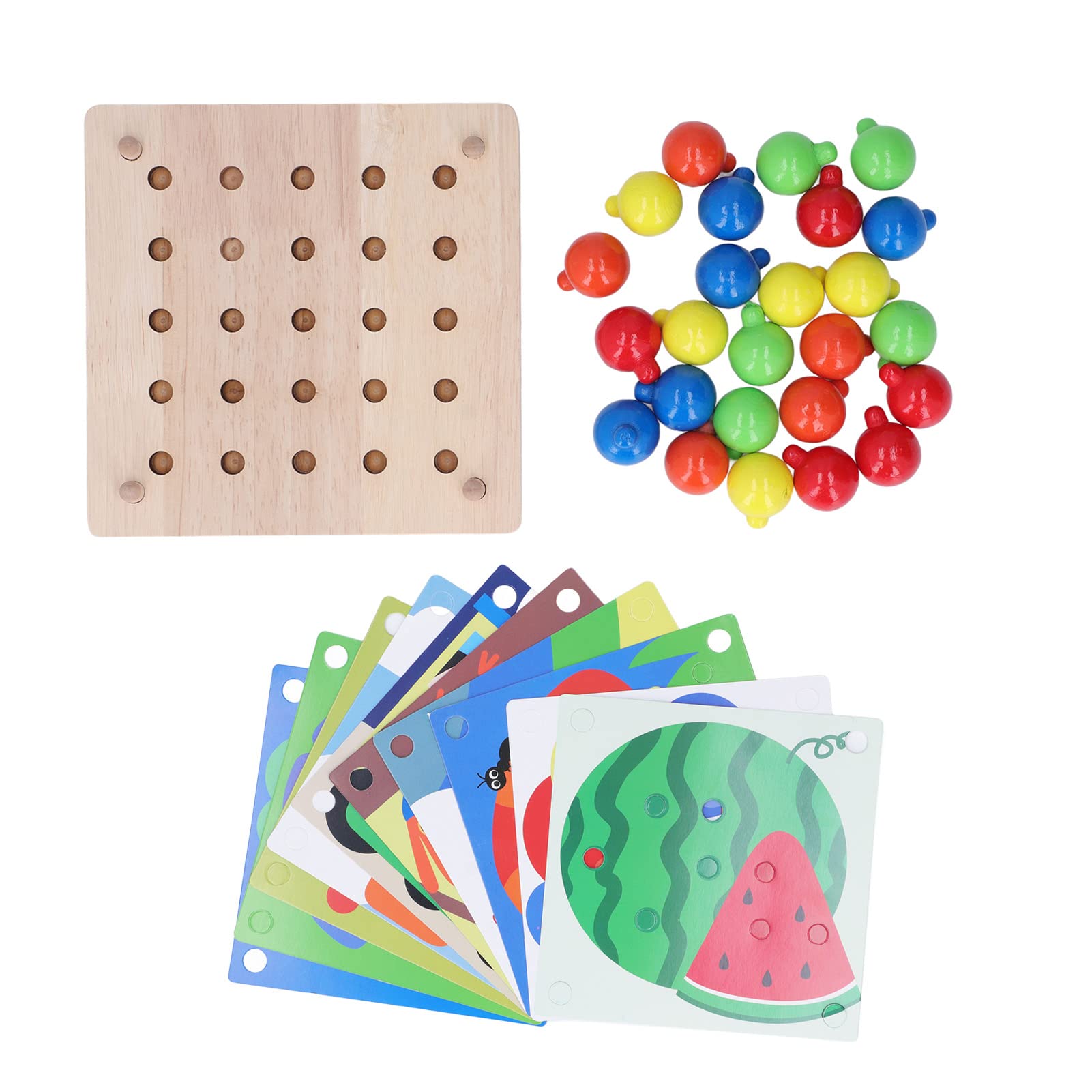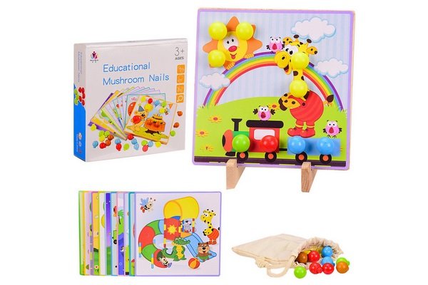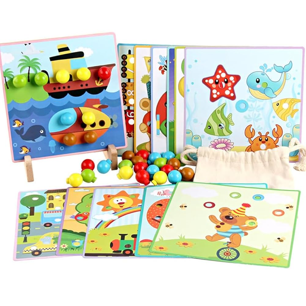 12 pcs of puzzle cards, Wooden Base Board, 25 pcs of Coloured Bead with Bag, 2 pcs of stands.