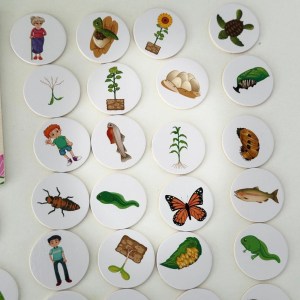 This innovative and captivating product has been designed to engage young learners in the captivating exploration of growth cycles among various species. With a durable board featuring four precisely crafted cutouts, accompanied by a collection of 40 wooden circle puzzle pieces showcasing the growth of 10 distinct species, this set offers an interactive learning experience that is both entertaining and educational.