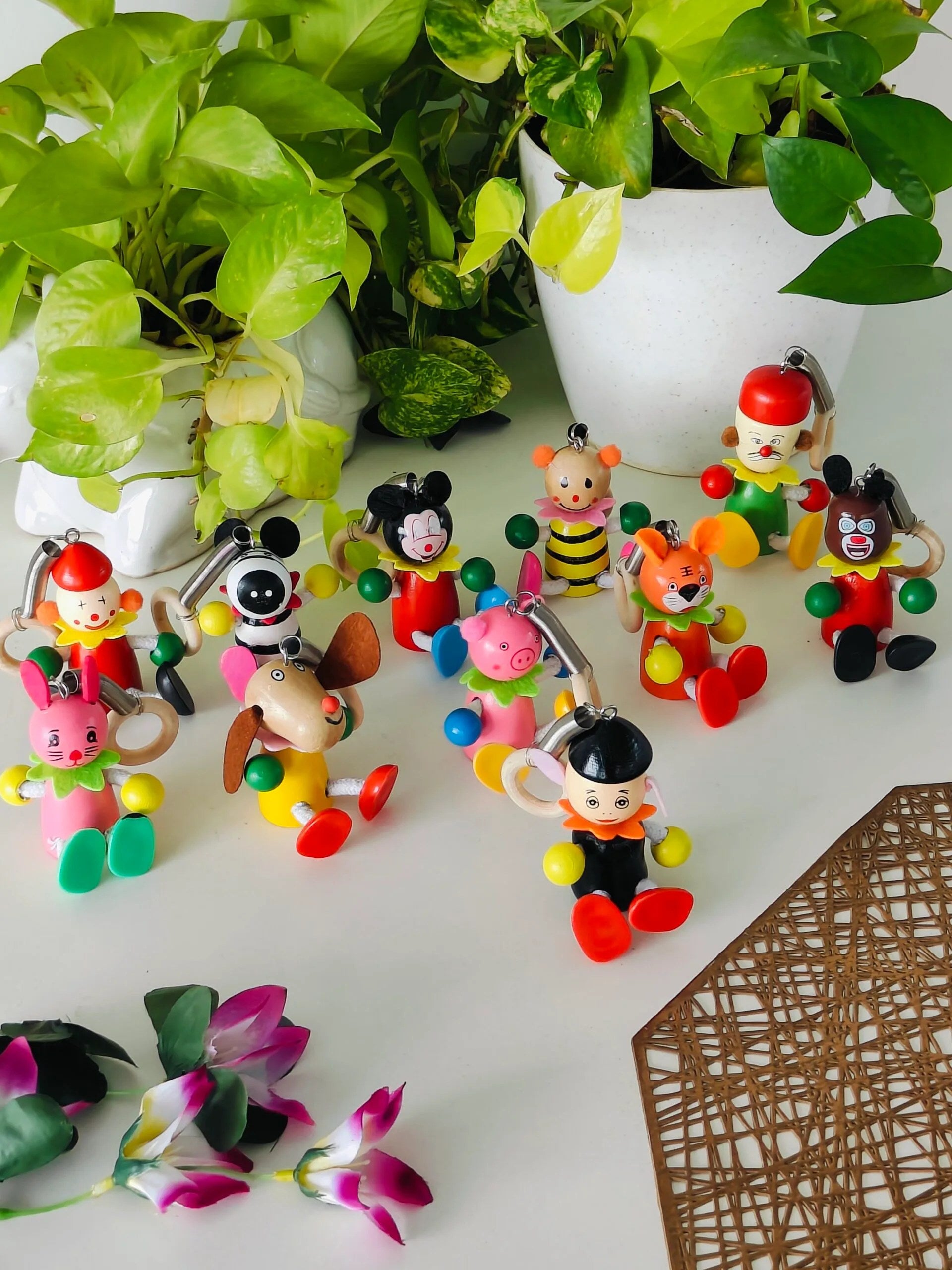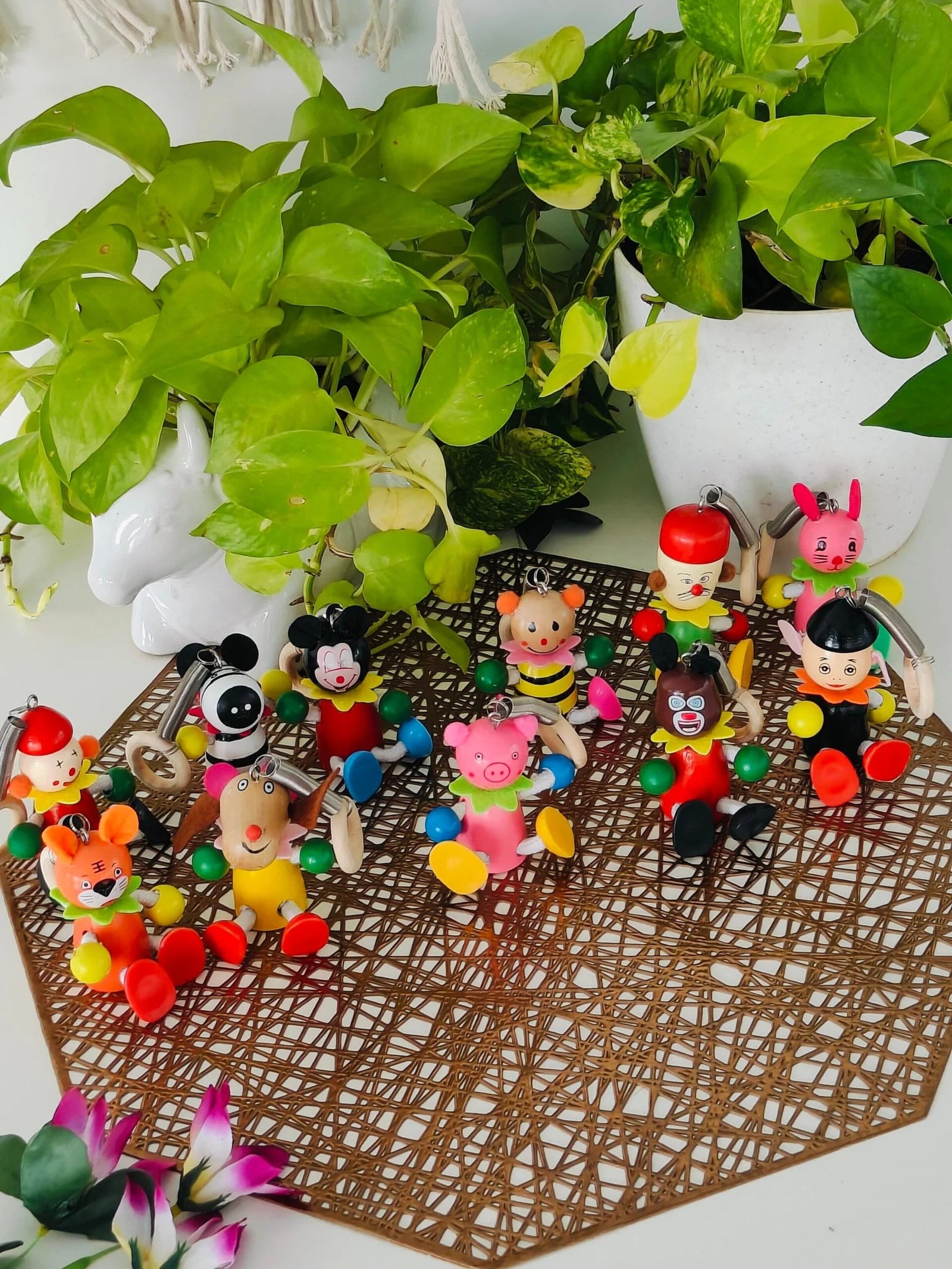 U can hang it anywhere to enjoy. Car hanging product makes your joy while travelling. It’s always happy to see at the center of mirror. The product is suitable for all types of cars and key chains and multipurpose. Handcrafted Product colored with Natural dyes. Dolls are attached with wooden ring and spring.