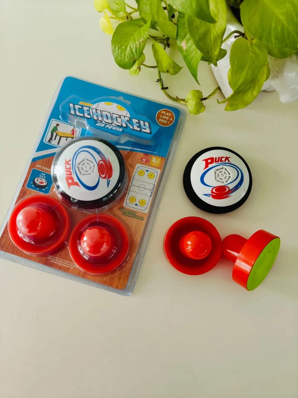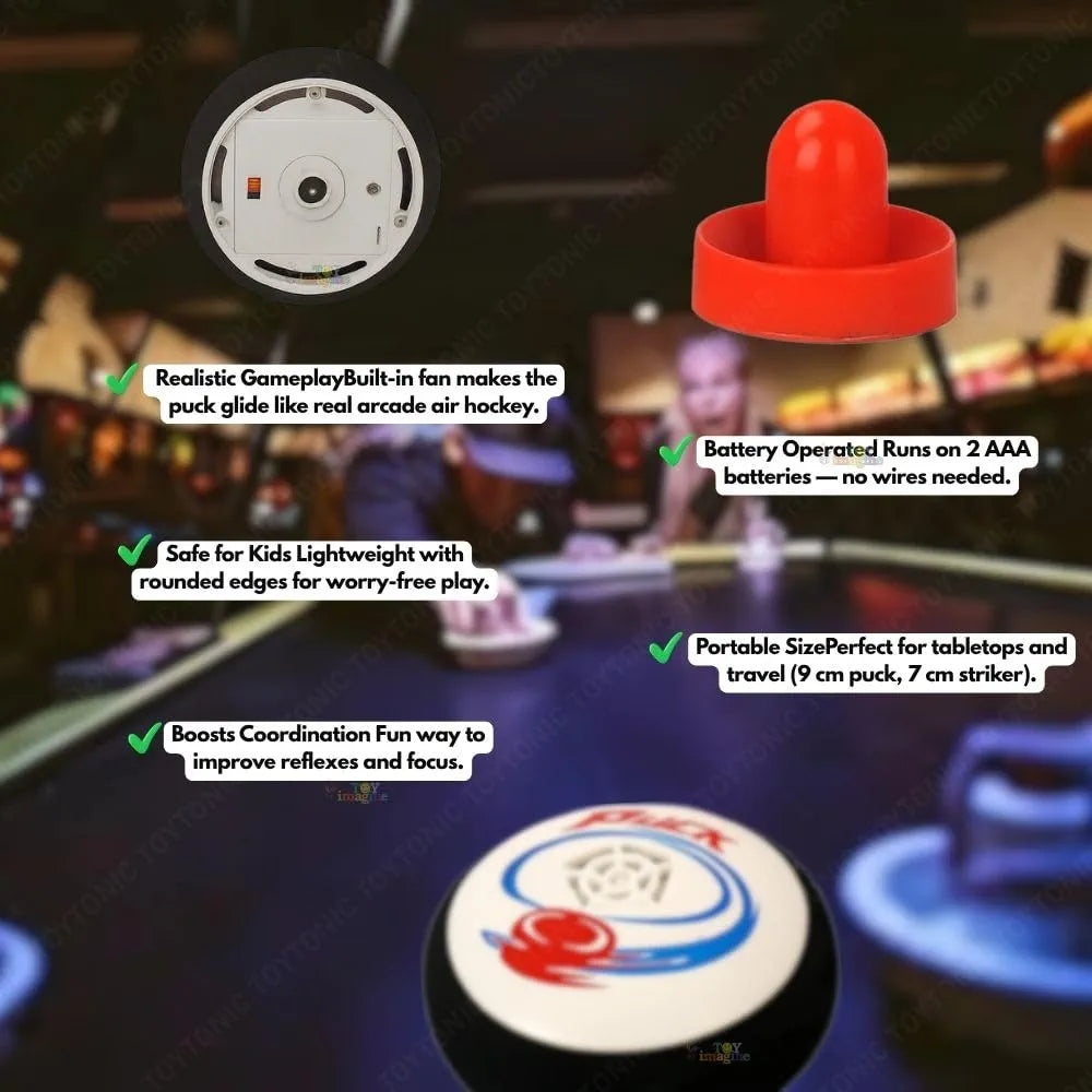 High Quality: 100% brand new and high quality this set includes 1 electric round Ice Hockey ball and 2 plastic pushers. (2pcs AA batteries are needed, but not included.) Interactive game toy for kids
