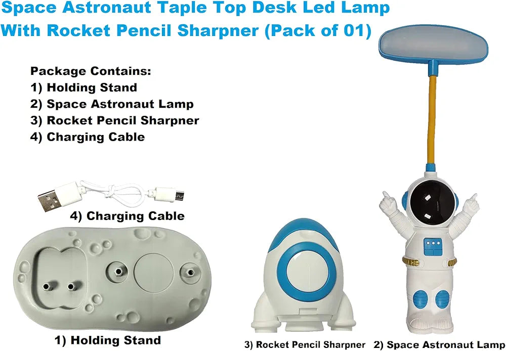 This is an astronaut-themed rechargeable LED desk lamp.