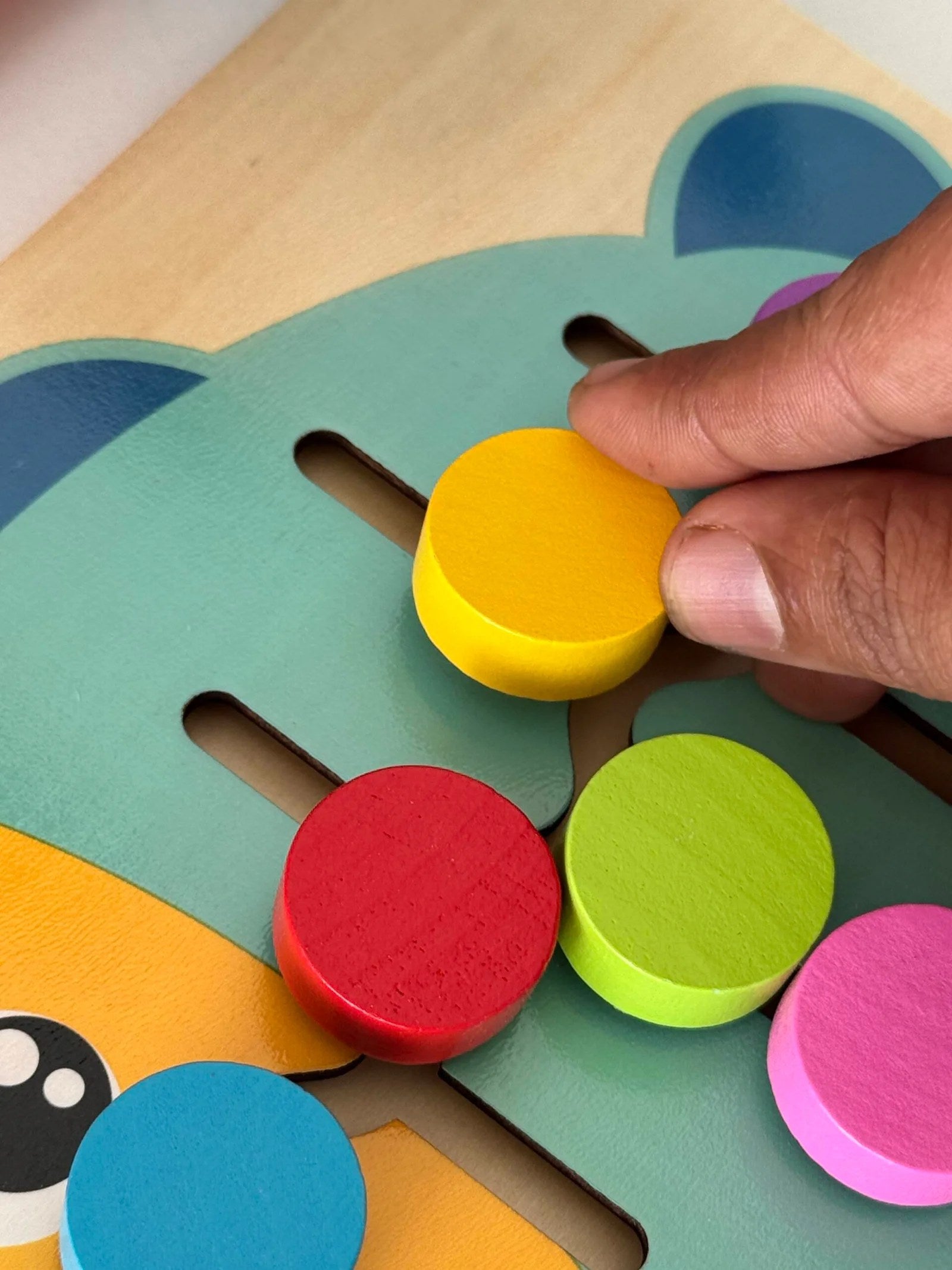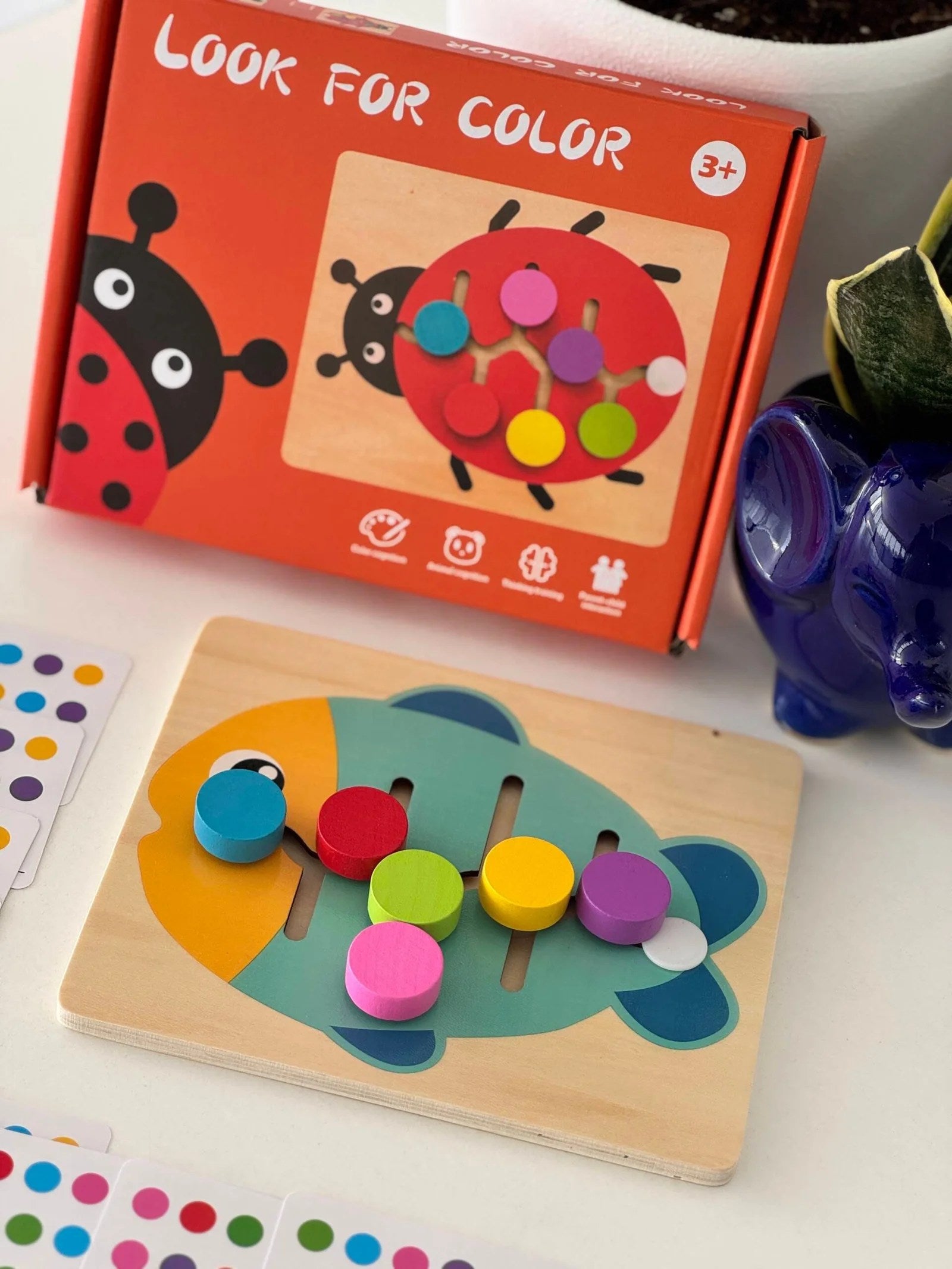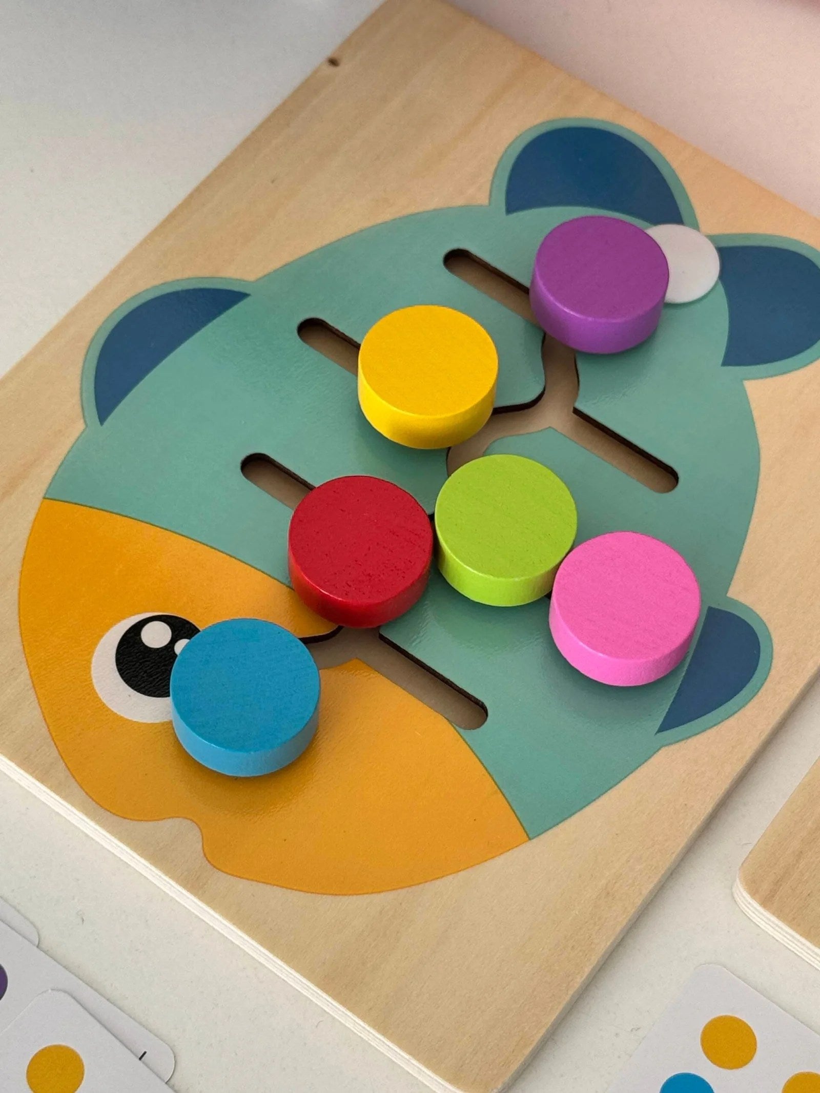 Kids can randomly extract a card and start to move it up, down, left, and right to match the card design.