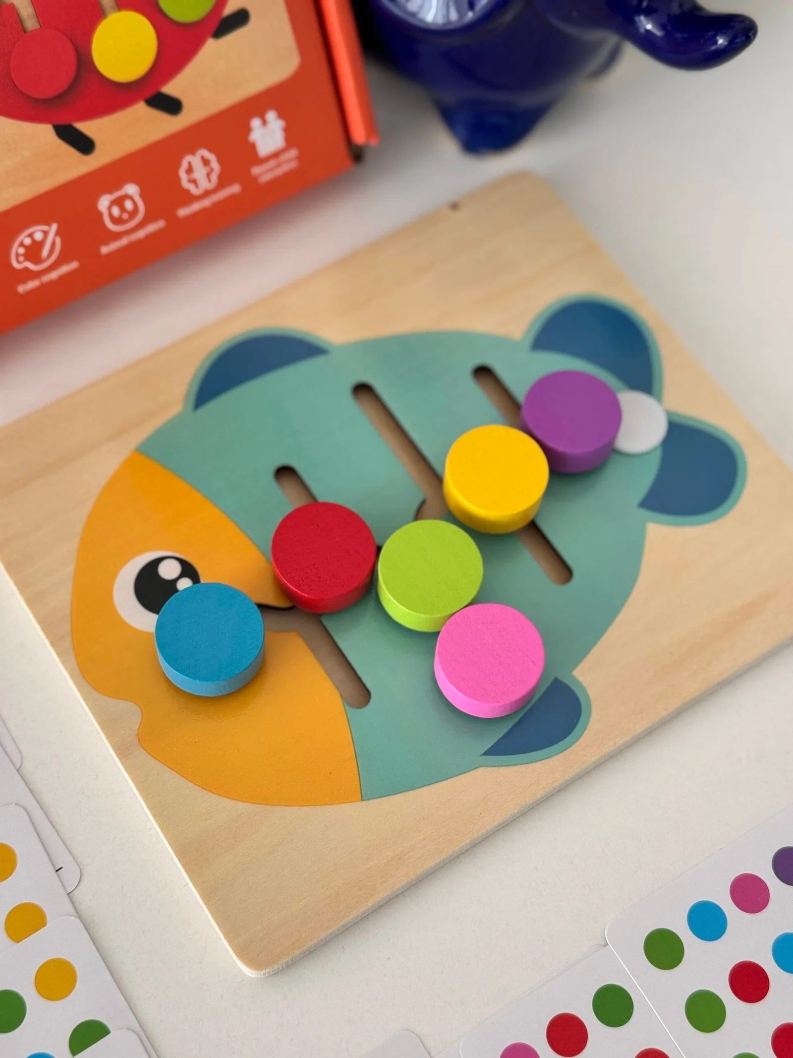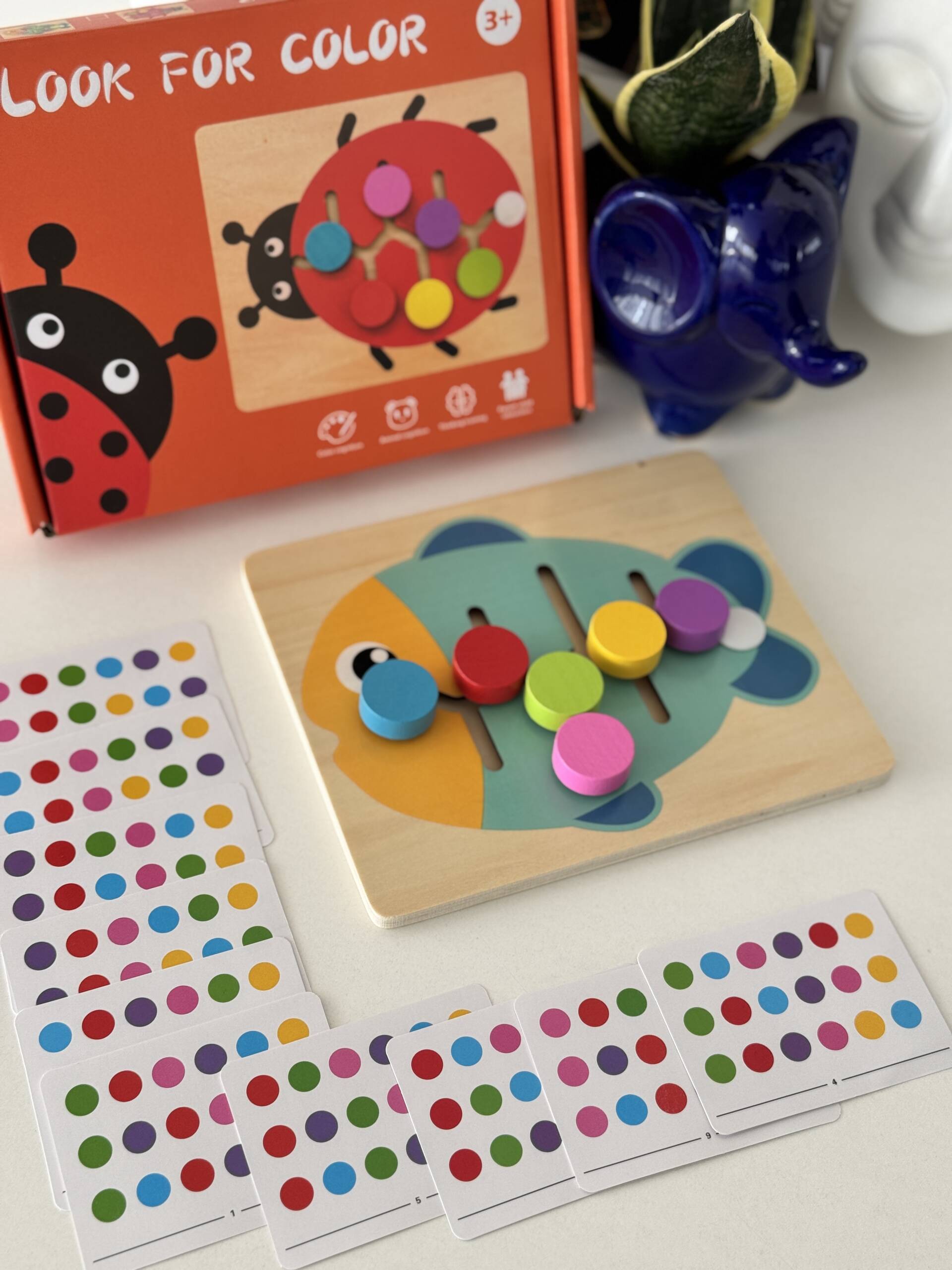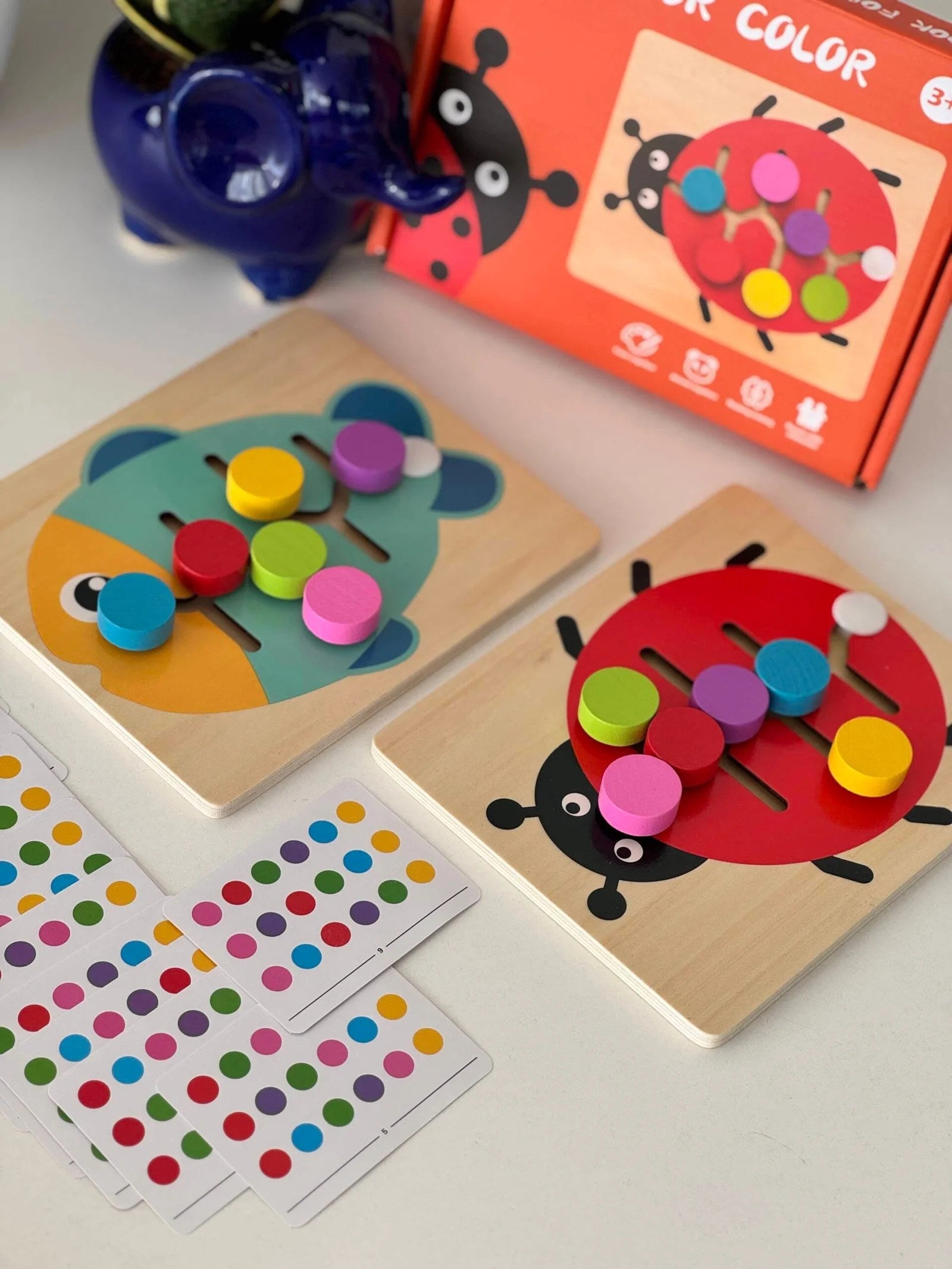 This set includes 1 wooden board, 10 double-sided cards [60 patterns]