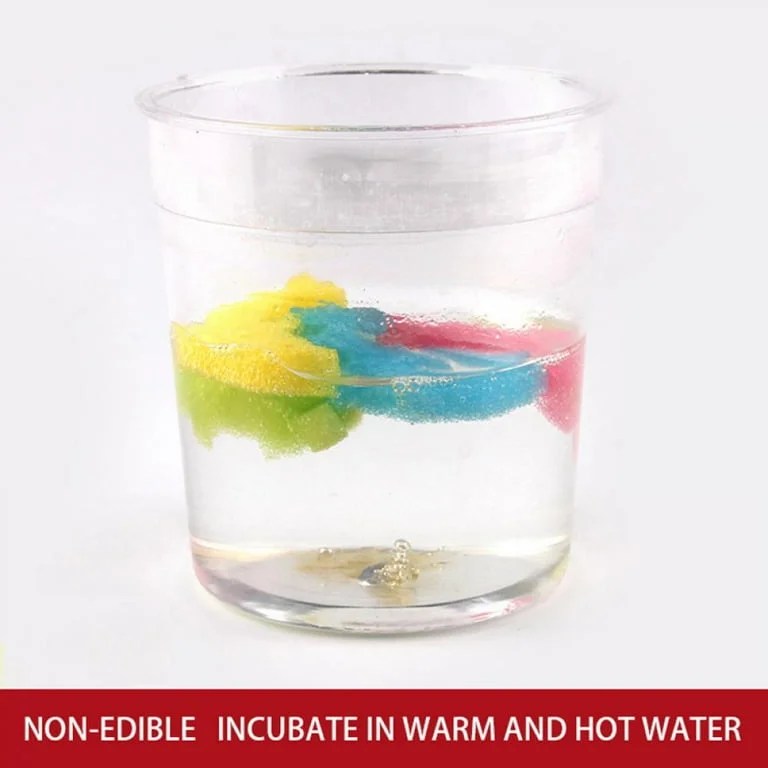 These capsules turn into foam animals after 10/15 minutes in lukewarm water.