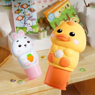 The set includes a bunny-shaped stamper, a small picture book, and 100 stickers.
