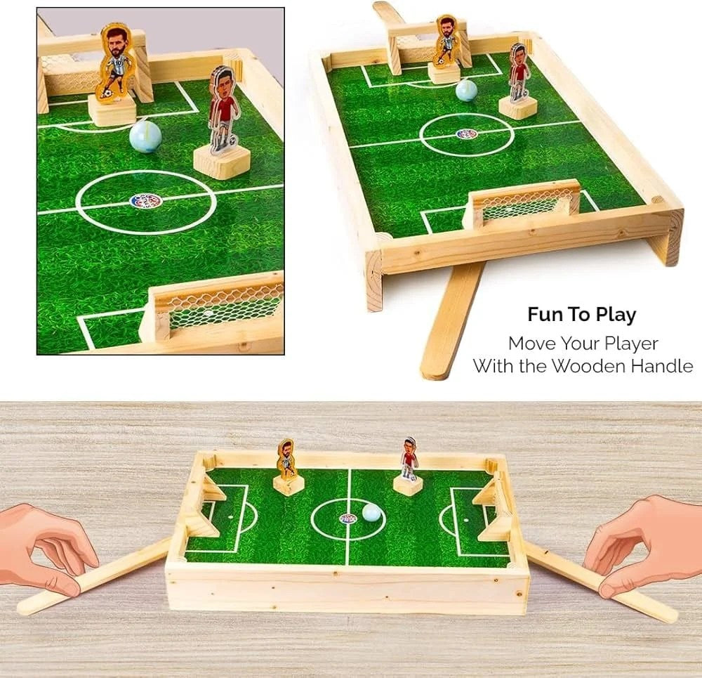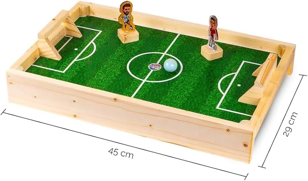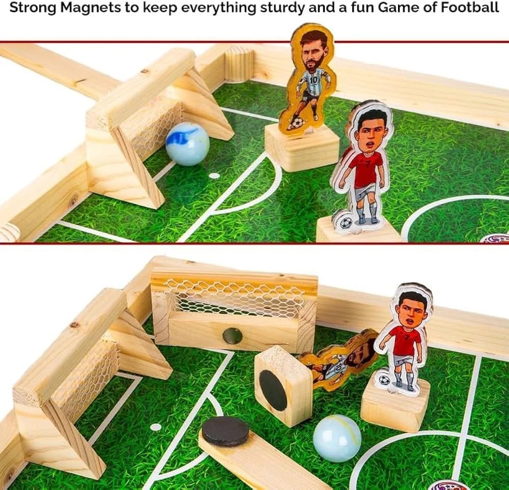 Fast, fun and frantic, magnetic football is a combination of the best of table football and air hockey, presented in a compact, robust and all-wooden package. Using powerful magnets under the playfield, players control their football players, moving them quickly and decisively to defend their half and attempt to score by striking the ball at their opponent’s goal.