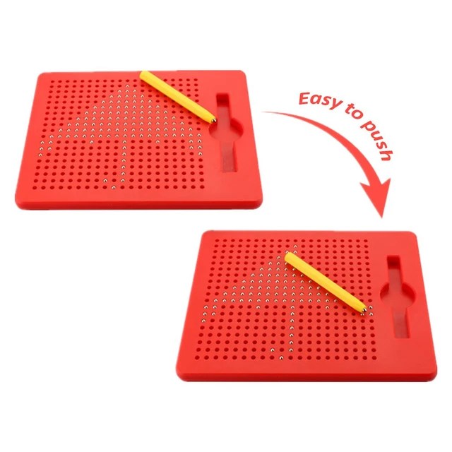 HOW TO USE – Practice writing on magnetic board, A magnetic stylus pen attract the beads to the surface with an audible click revealing your creation. Push the beads down with a pen or finger to erase and start over. The beads are completely self-contained and never fall out
