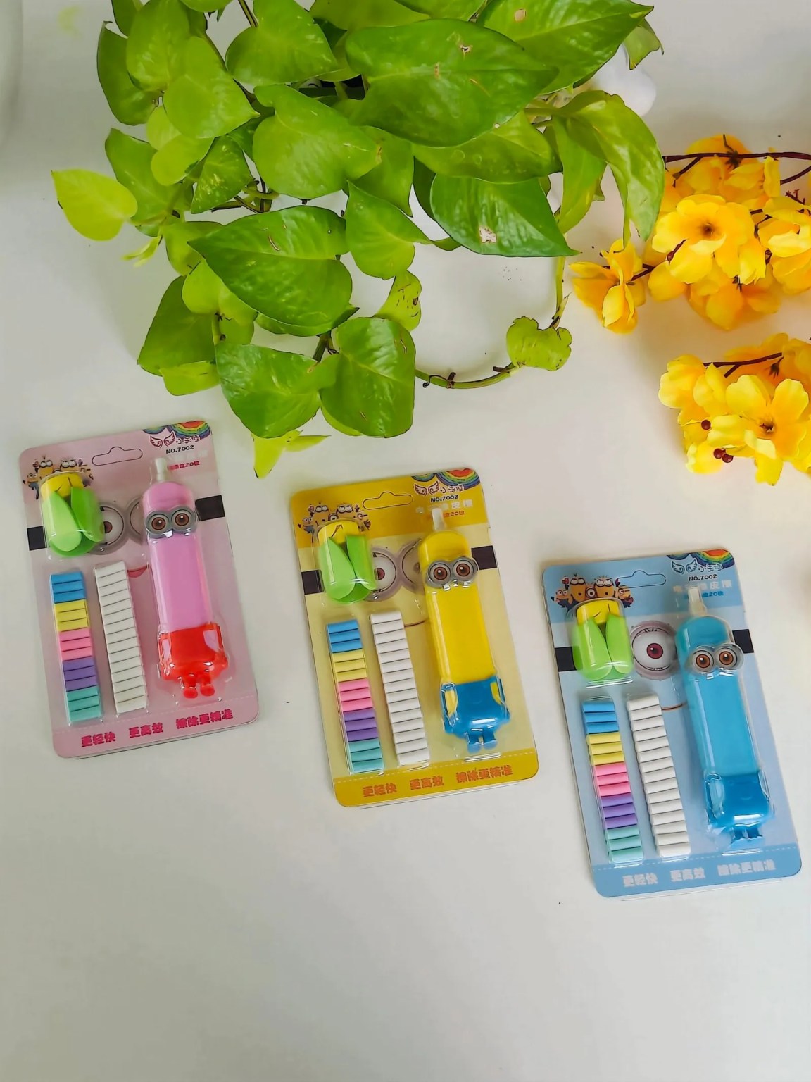 The Minion Electric Eraser is a high-performance, battery-operated erasing tool designed for precision and efficiency. Its key features include a compact, lightweight design, making it easy to handle and carry. The eraser is equipped with a strong motor that ensures quick and clean erasing, saving time and effort. It comes with 20 refill erasers, ensuring long-term use. The unique selling point of the Minion Electric Eraser is its fun, Minion-themed design, making it an attractive choice for children and Minion fans. Its one-button operation makes it user-friendly, even for young users. This product not only enhances the quality of work by providing clean erasing but also adds an element of fun to the task