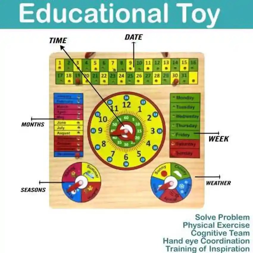 Wooden Calendar, Clock, Weather, and Seasons Board—a captivating and educational toy for kids. Foster essential skills while having fun!