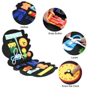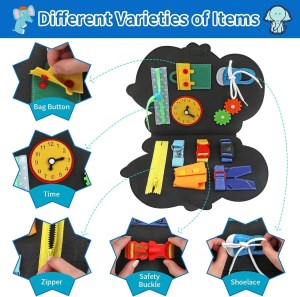 βοΈ **Learn & Play** β Kids can **tie laces, fasten buckles, open/close zippers, match clothes, and even learn the clock β°**.