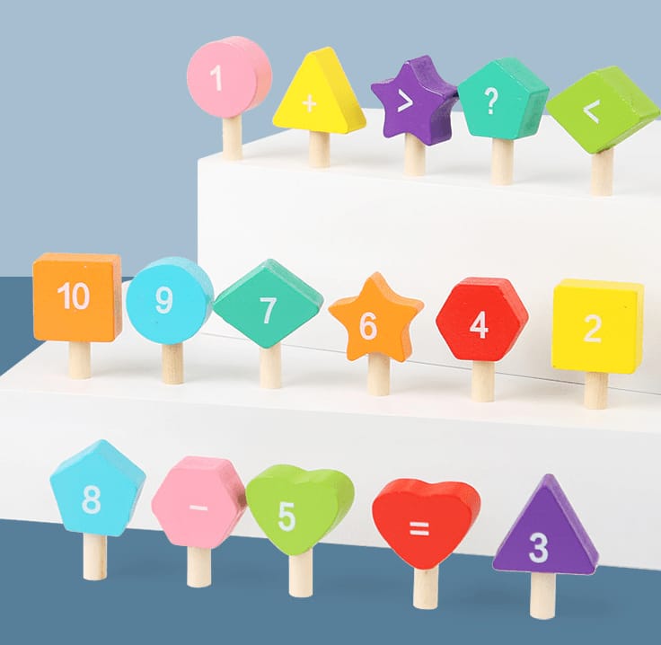 🍓 The puzzle game features wooden blocks in the shapes of fruits and vegetables, designed to resemble a farm setting on the wooden board. On the other side of the blocks, you’ll find mathematical numbers and symbols, allowing children to learn mathematical calculations while playing.