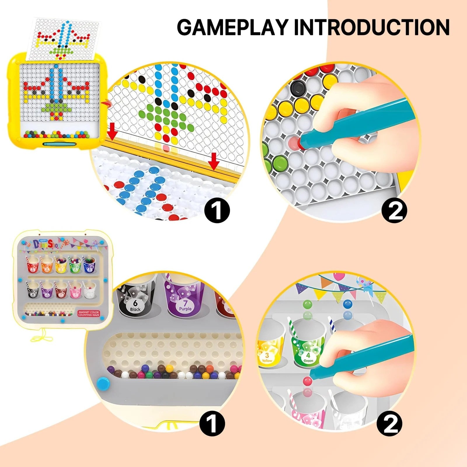 - 2 IN 1 NEW DESIGN MAGNETIC TOYS: Magnetic Drawing Board & Magnetic Color and Number Maze are double sides for use. Kids can follow outlines and place colored beans to create rich patterns, encouraging creativity and imagination. Hands-on way to explore colors and numbers!