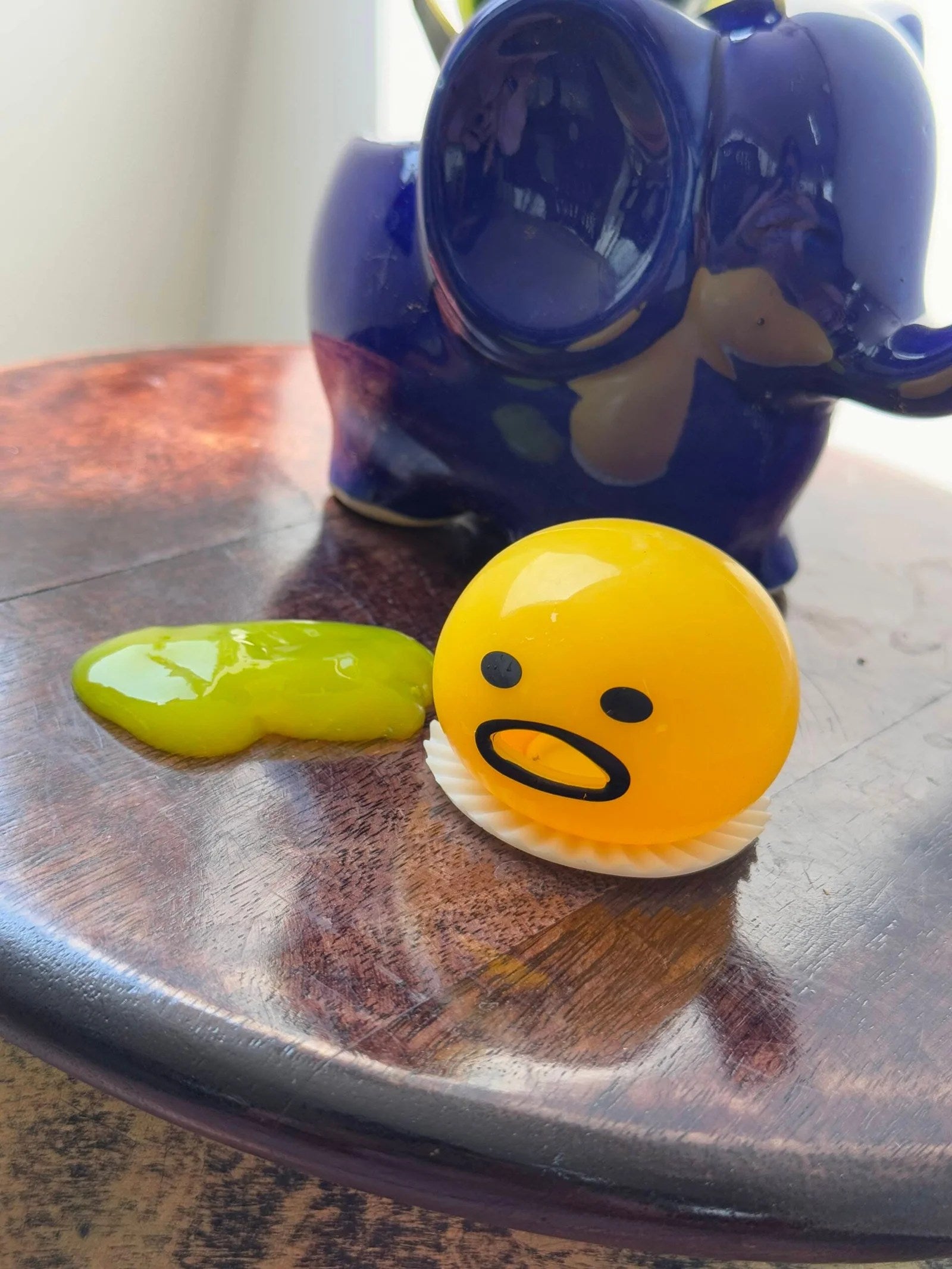 How to Play:Open the egg slime bag, put it on the table, squeeze the egg yolk, let the mouth to the egg slime and let go, vomiting egg will easily inhale the egg slime, and squeeze the egg yolk again to spit out the egg slime.