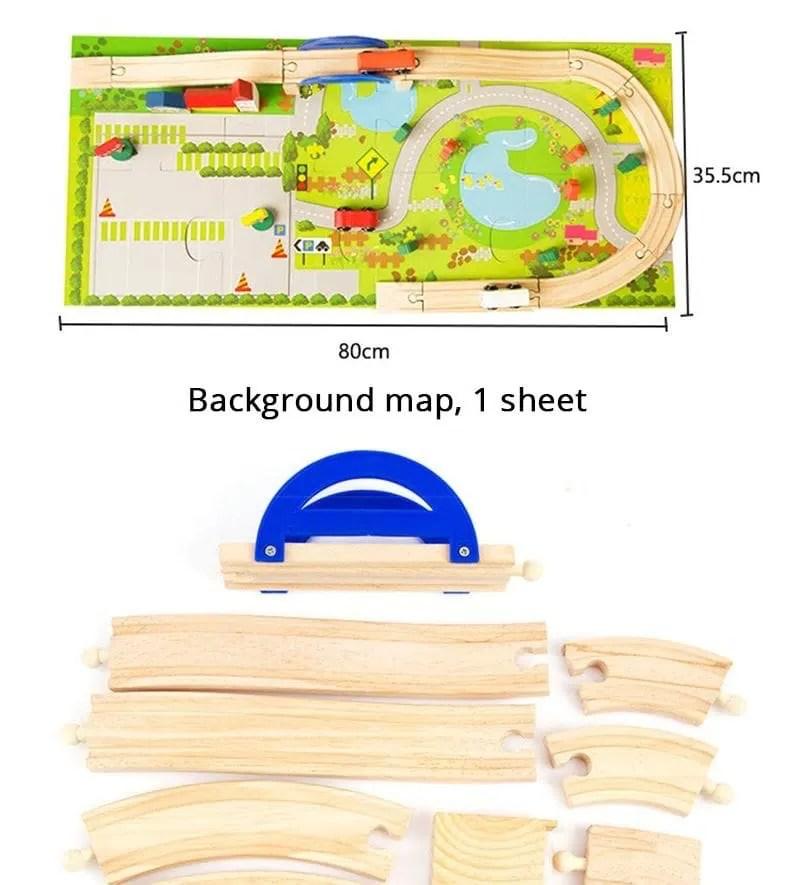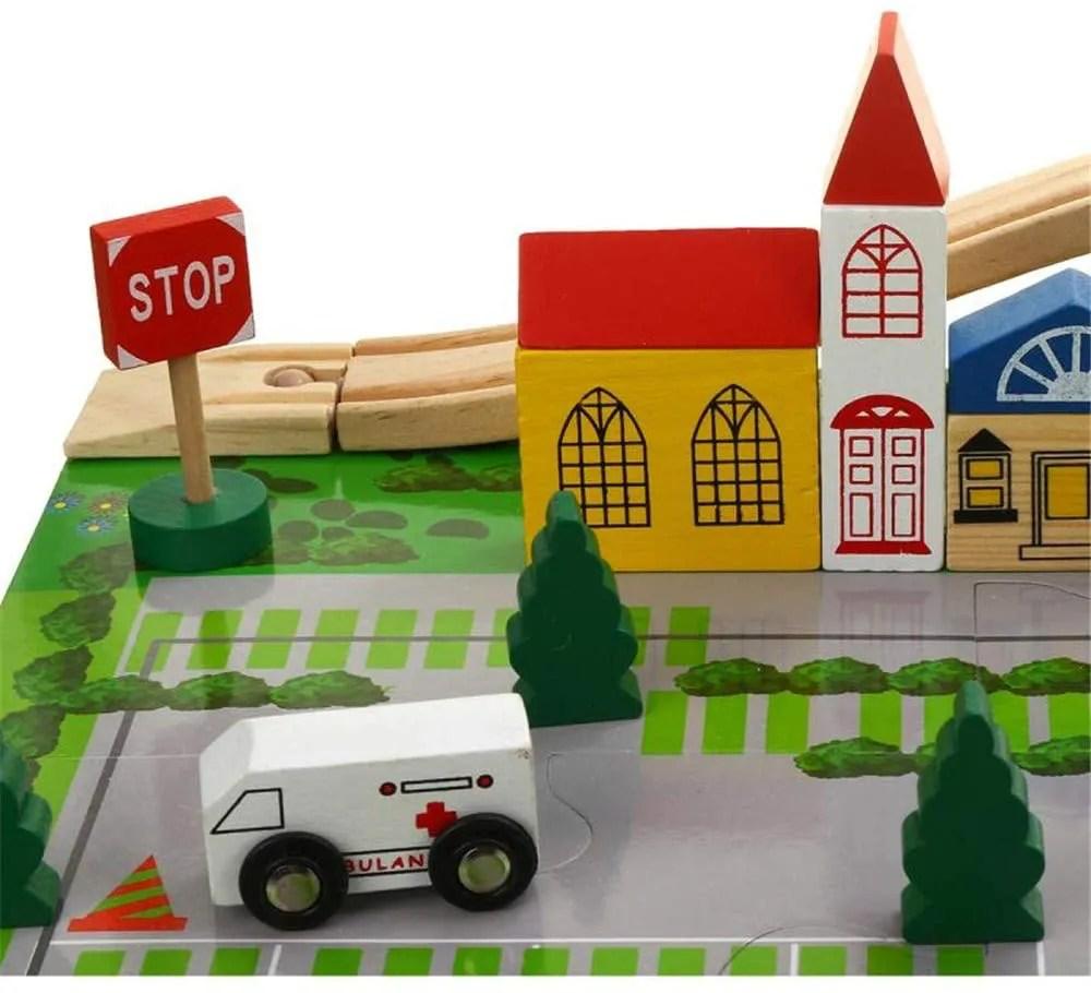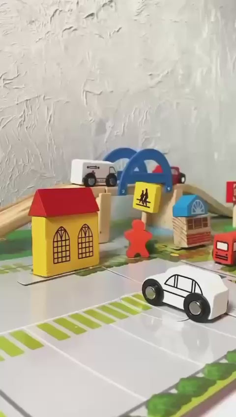 WOODEN CONSTRUCTOR-PUZZLE CITY ART ROAD WITH A BRIDGE, CARS AND ACCESSORIES kids will surely like.