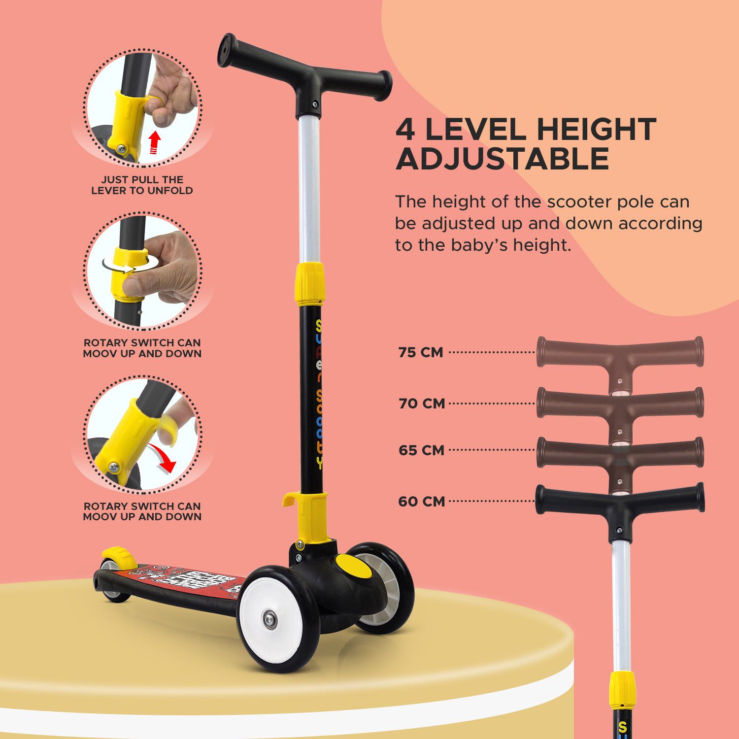 3 PVC Wheels: The kick scooter features three PVC wheels, enabling children to smoothly navigate even on rough surfaces