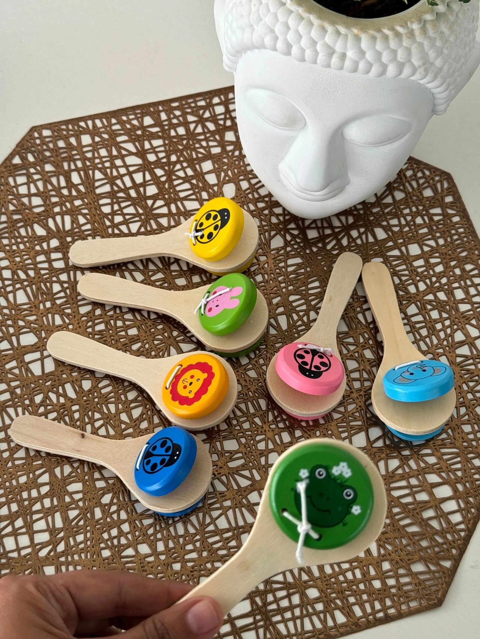 stick clapper are typically small, handheld toys designed to make noise when shaken. They are often used for infants and young children to stimulate their senses and develop motor skills
