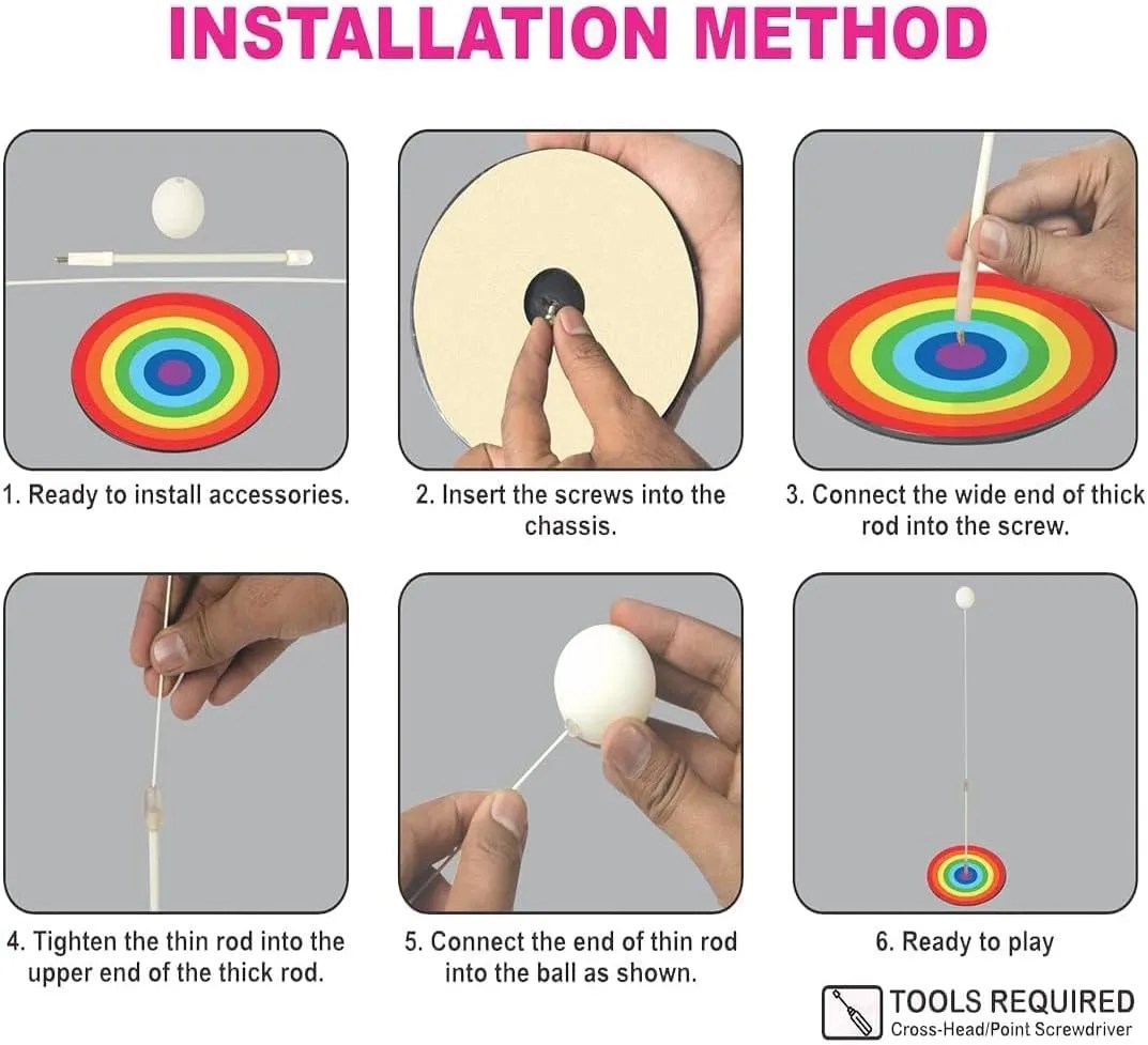 Start Playing: Hit the ball with the racket. The flexible rod will rebound the ball back, allowing for continuous practice and play.