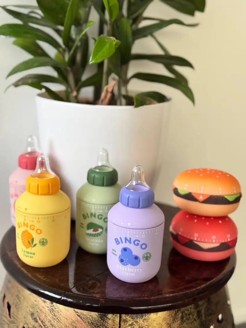 Cute Feeding-bottle and burger Model Mechanical timer. This is mechanical timer, please allow 1-2 minutes deviation.