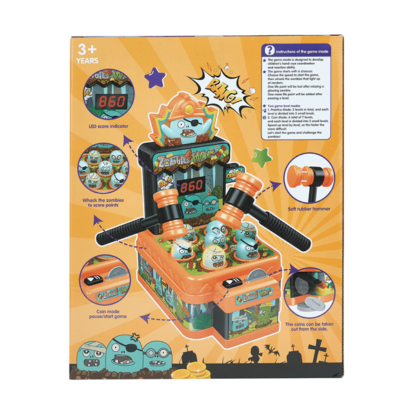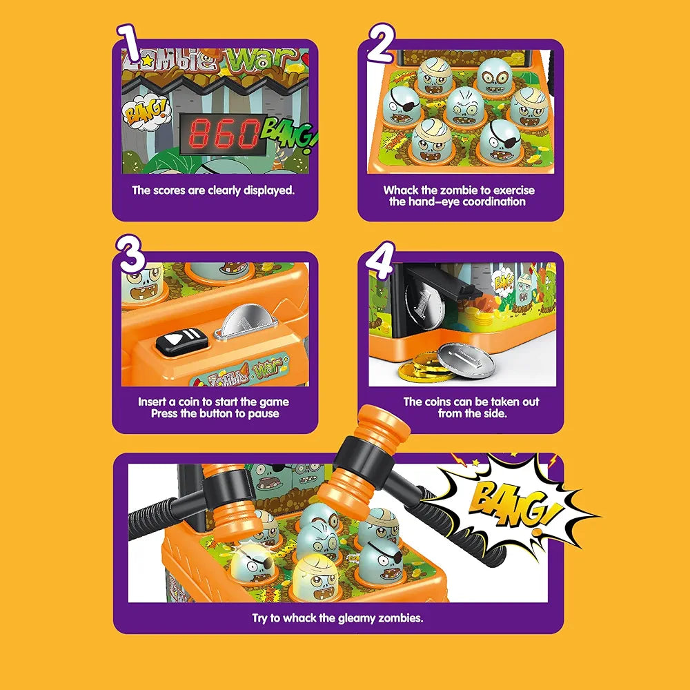 - Function: Points are scored by hitting the popping zombies with the hammer as they light up./